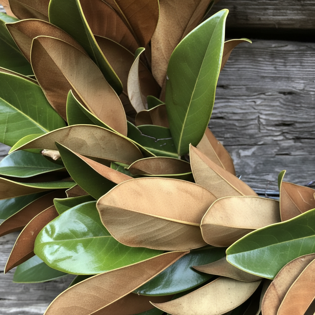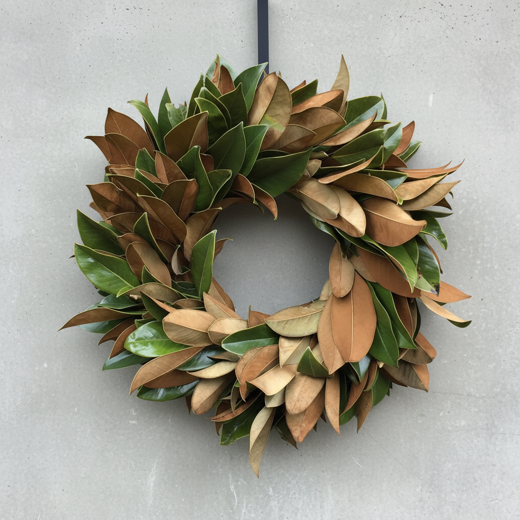 Elevate your space with the natural charm of our handcrafted Magnolia Wreath, a favorite holiday decoration in Southern homes. Featuring fresh, hand-harvested magnolia leaves renowned for their glossy green tops and warm golden undersides, this wreath is a stunning accent that transitions beautifully as it dries.
