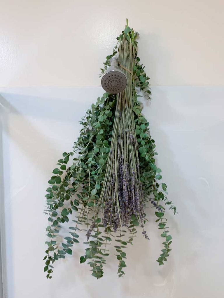 Note: The eucalyptus and lavender do not come pre-bundled. We include twine to make bundling and hanging easy (also check out this guide)