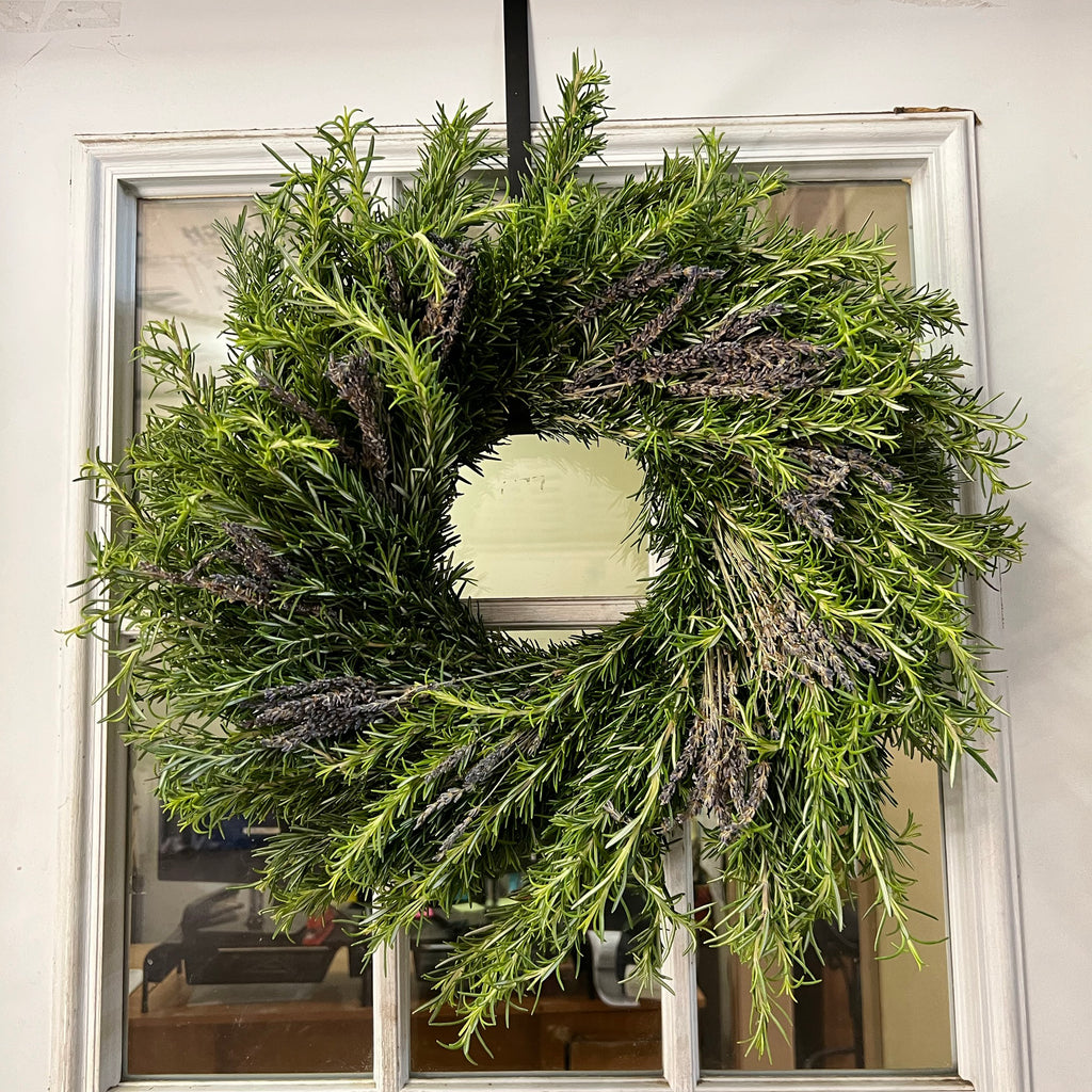 Hand-tied from freshly cut lavender blossoms and verdant rosemary sprigs, this fragrant wreath blends the soothing notes of lavender with the invigorating, herb-garden freshness of rosemary. The result is a naturally calming accent for your home—or a thoughtful, aromatic house-warming gift.