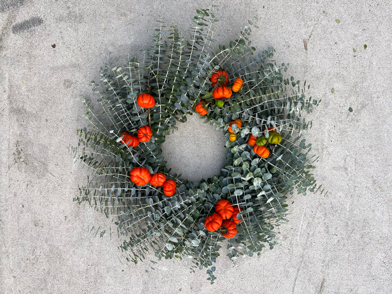 Seasonal Pumpkin Wreath Real Live Leaves [Free Overnight Delivery Included]