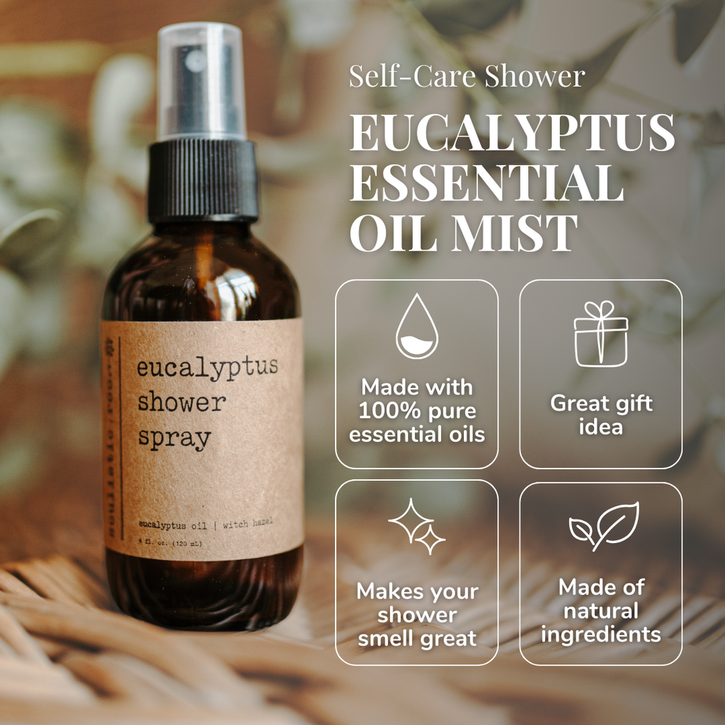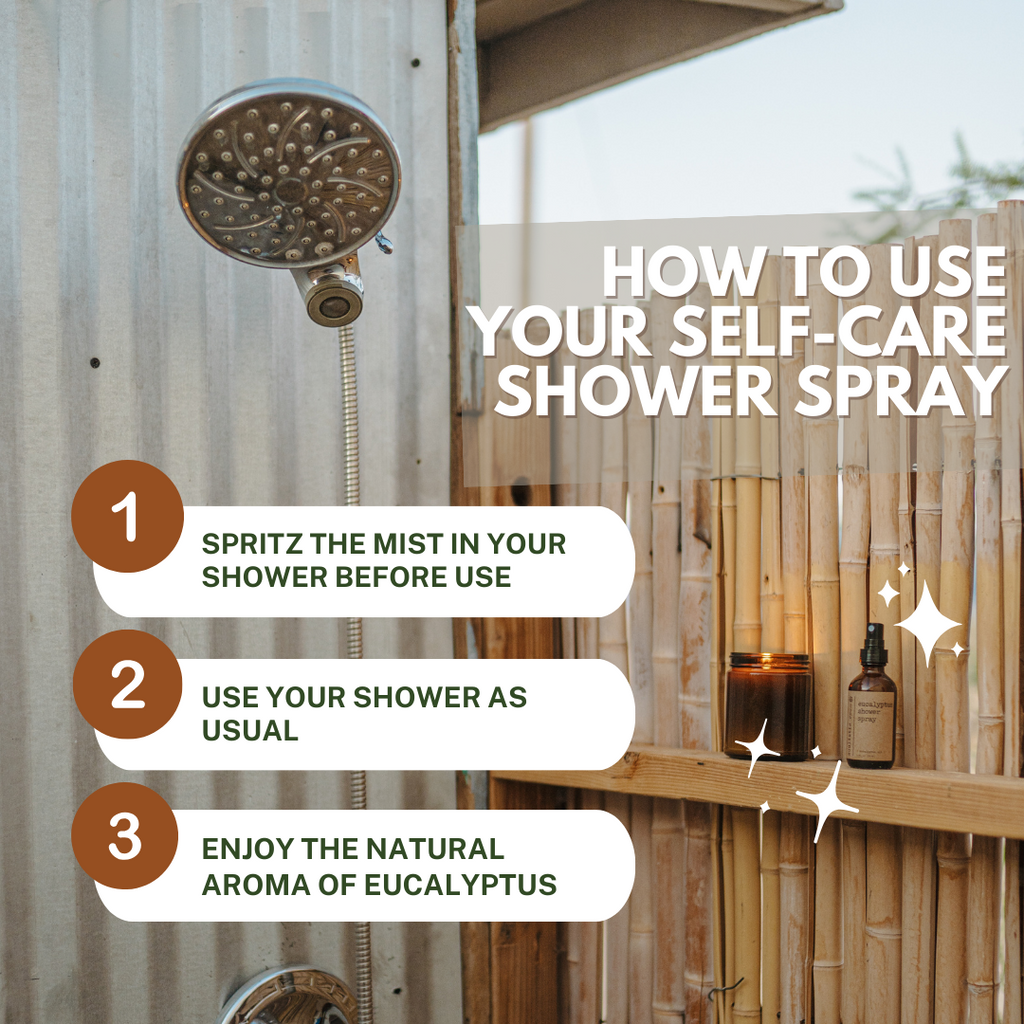 Directions for Use: For the best aromatic experience, spray 3-4 times at the start of your shower, away from your face. Allow the steam and the spray to mingle, then step in and enjoy the transformative power of eucalyptus.