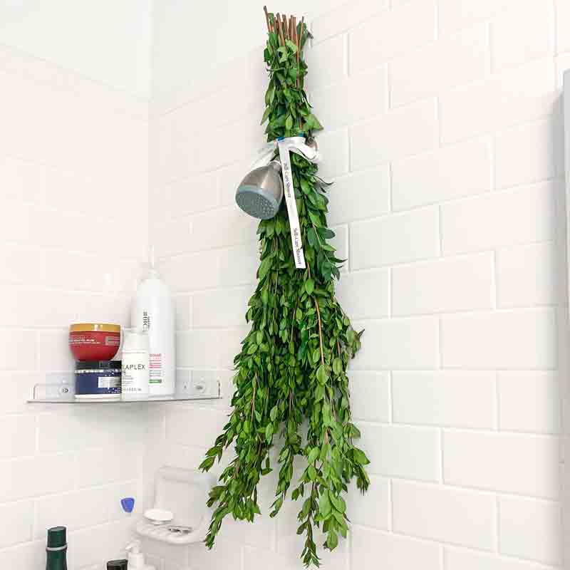 - For best results, soak with cool water, then gently roll leaves (make sure to do so over a towel) to release their essence, before adding to shower