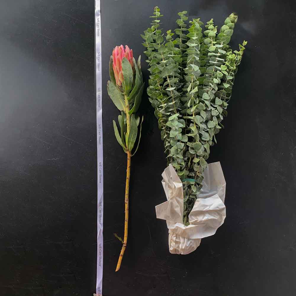 The pink protea makes a statement in a vase or alongside eucalyptus. The eye catching color is your personal self-care reminder. Know somebody who needs more self-care in their life? Or need more time for yourself? Our protea and eucalyptus bunch is a perfect "pick-me-up" gift