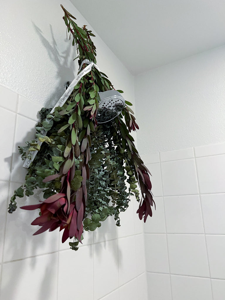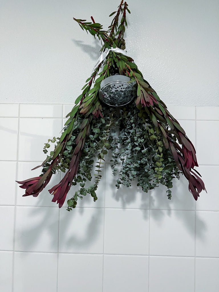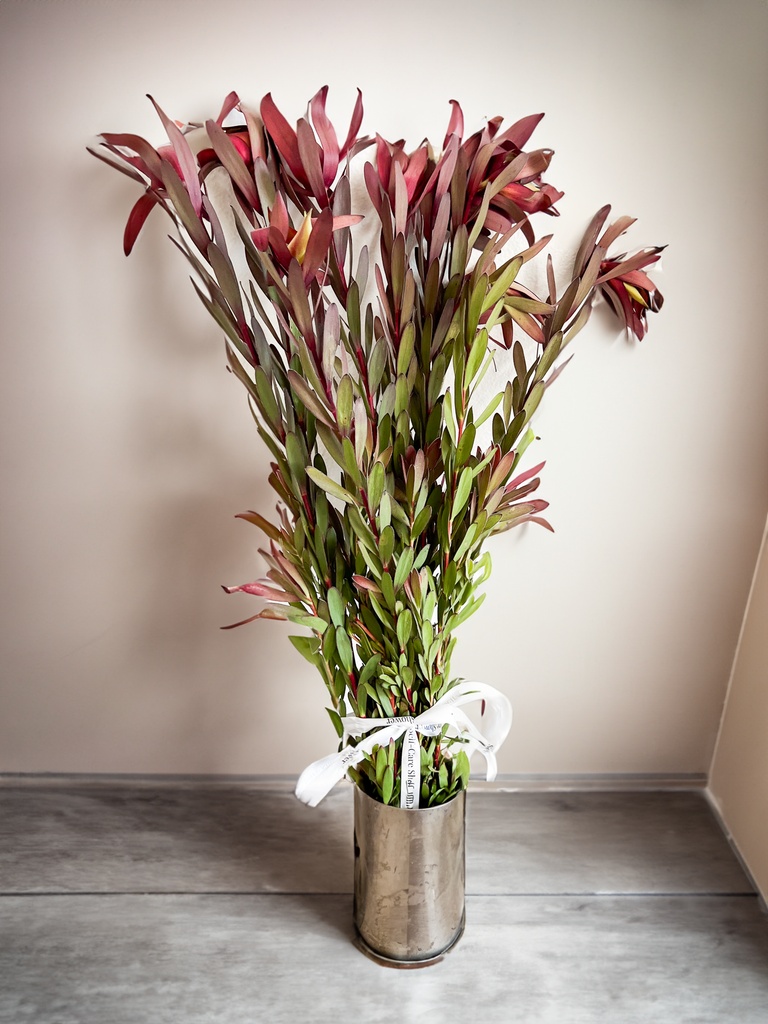 Trim the end of the protea steam and add to a vase with water for longevity, or bundle together with the eucalyptus.